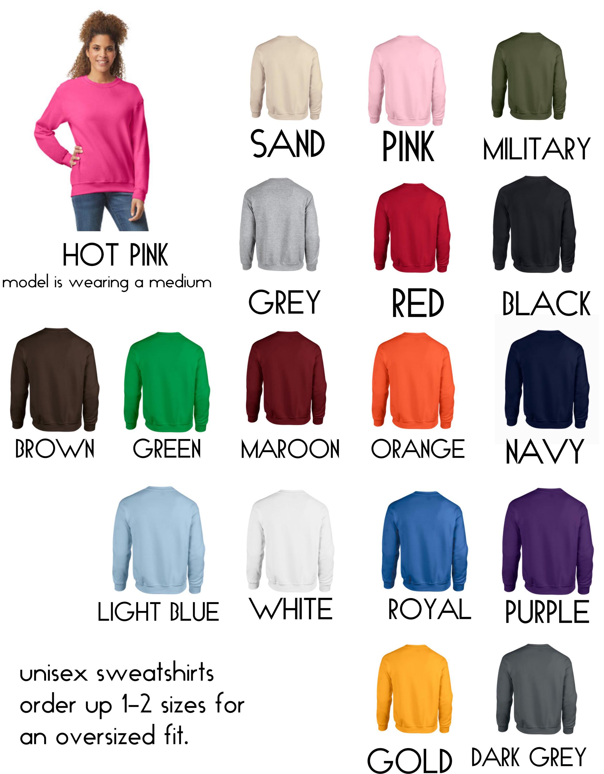 This winter sweatshirt has a fleece lining and is super comfy. It will be as pictured in the writing color you choose in the drop down boxes unless you leave a note for different.