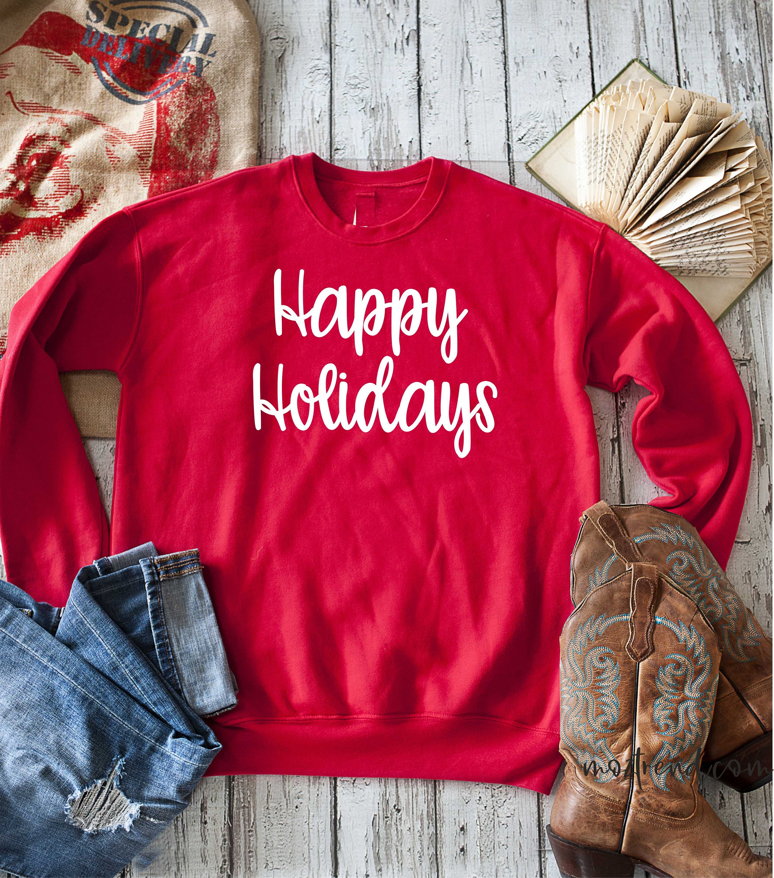 Happy Holidays Sweatshirt / Womens Sweatshirt / unisex fuzzy Sweaters / Cute Sweatshirts for women / black Friday Sale / Holiday shirts