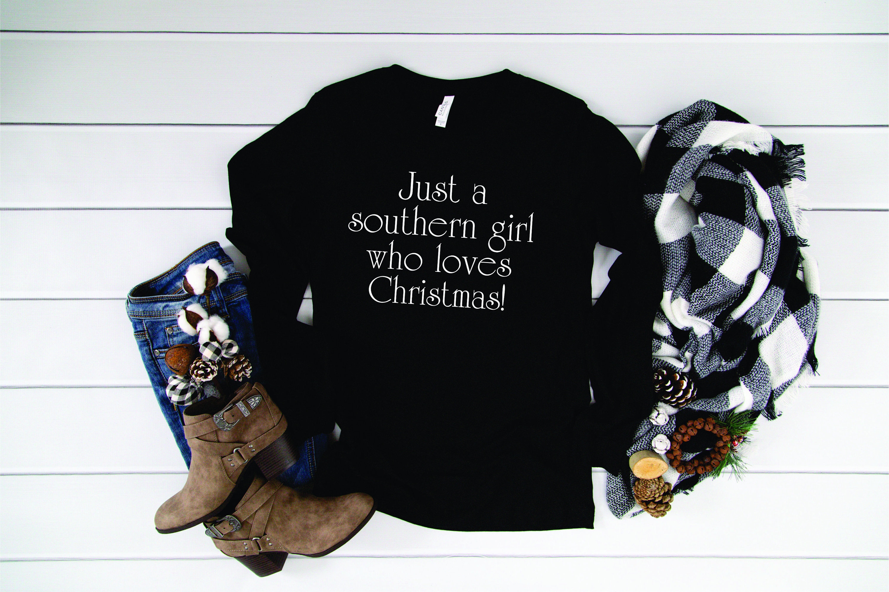 Just a southern girl who loves christmas shirt , long sleeve christmas t-shirt , southern shirts , texas , alabama shirt , ladies t-shirts