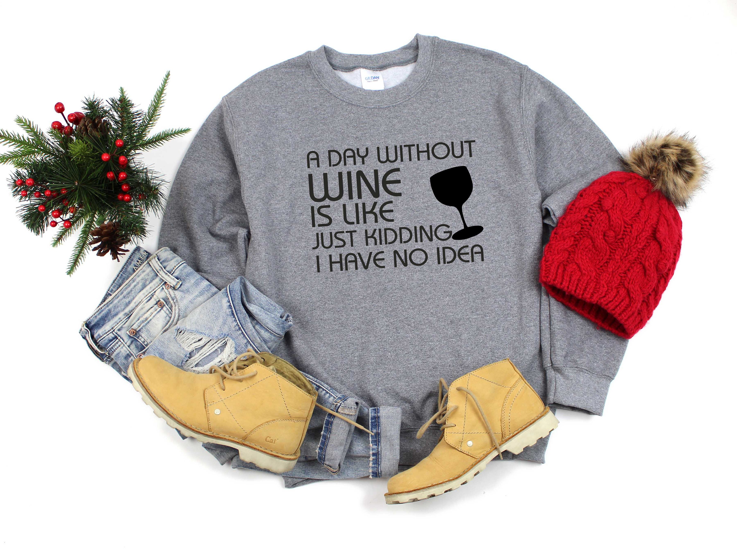 A day without wine is like just kidding I have no idea sweatshirt , funny holiday shirts for women , wine gift , present for a wine lover