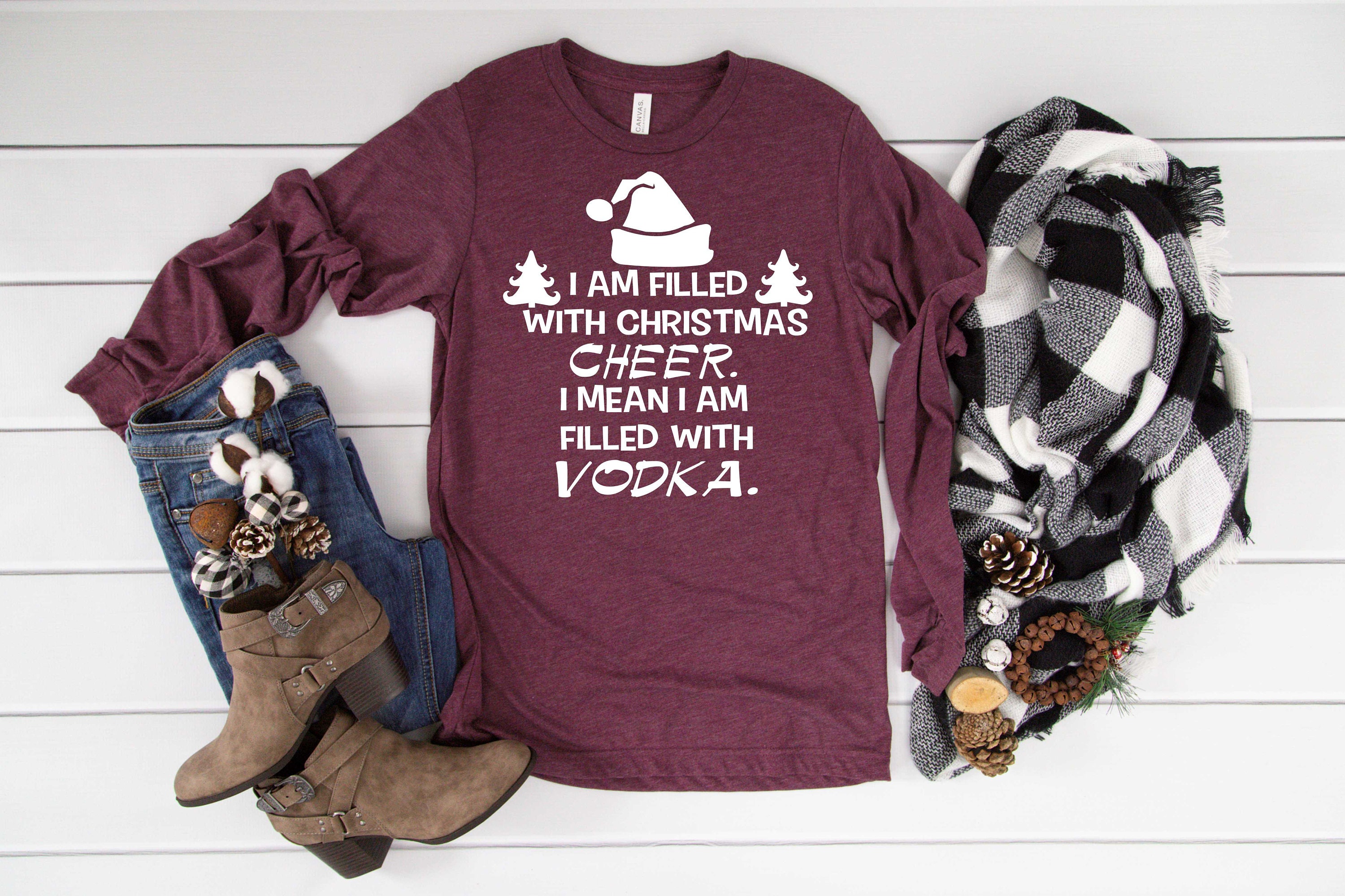 I am filled with christmas cheer, I mean I am filled with vodka funny holiday shirt , tacky , ugly shirts , funny christmas long sleeve tee