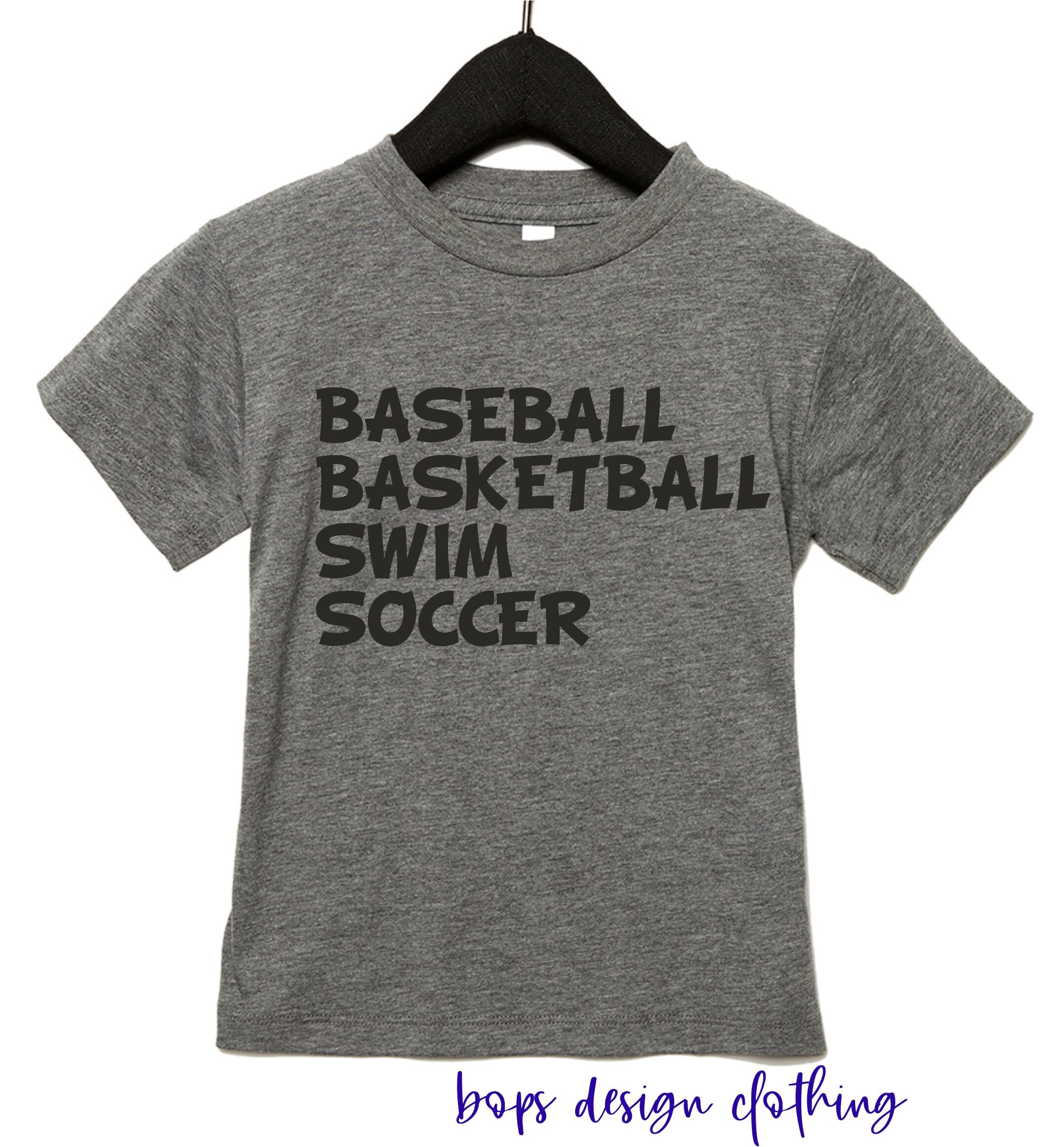 Sports word shirt , custom word t-shirt for boys, mens, girls . Baseball, Basketball, swim , soccer shirt , athletic clothing, personalized