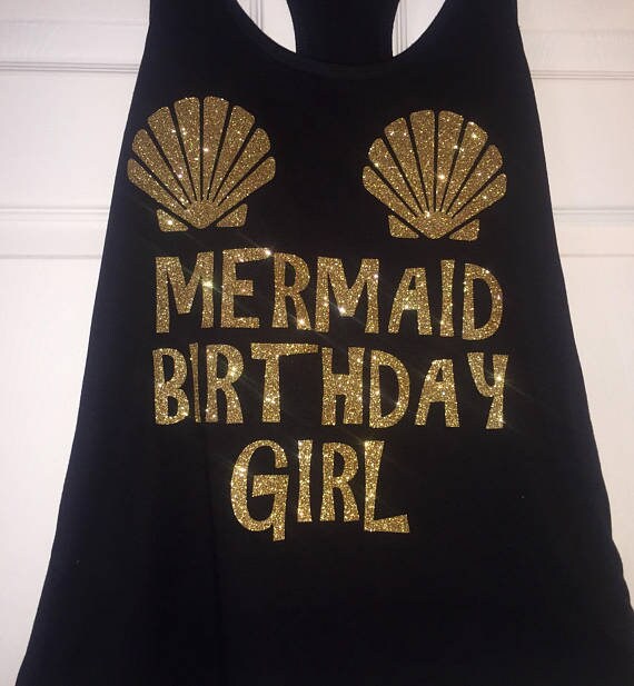 Cute Mermaid birthday tank top , Gold glitter birthday shirt, 16th, 18th, 21st, 25th , 30th birthday squad shirts, seashell birthday tees